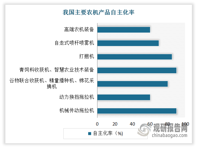 特别是正在高端农业机械方面,我国仍然存正在较大的手艺瓶颈,例如高压共轨、高效传动、种管收功课、高精度传感、高质智控等效率、靠得住性等手艺实现是国外领先程度的50%摆布,高机能液压系统、细密排种器、打捆机打结器、高端公用传感器智能节制元器件等零部件次要靠进口(对外依存度仍高达90%),正在严沉配备自从立异能力方面还有短板,全程全面机械化仿照照旧有40%摆布的产物处于空白阶段,外资品牌还占领我国高端农业机械80%以上市场份额。