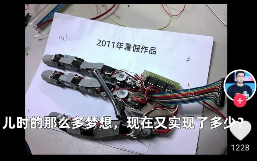 2010年暑假,王兴兴还曾花300元便宜力反馈手套和工致手,完成了一个“数字孪生力反馈设备”项目。仍然是纯手工制图、切割、打磨,期间没有利用任何电动东西,最终做出了多度力反馈手套以及3D虚拟现实力交互软件。