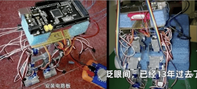 2009年冬天,大一的王兴兴第一次玩单片机(MCU),他用本人的零花钱买了一块几十元的Arduino板,正在大一寒假,王兴兴又买了十多个9g舵机,采用纯手工制图、手工切割、打磨零件等体例,最终仅用200元,就做出了一个14度双脚人形机械人,但曲到后俩也只能勉走和做简单的动做。
