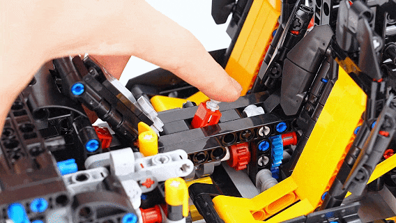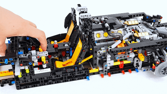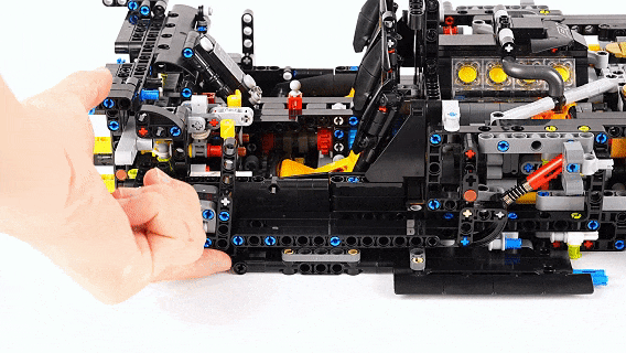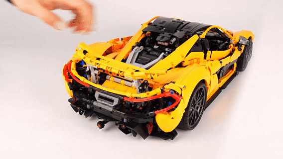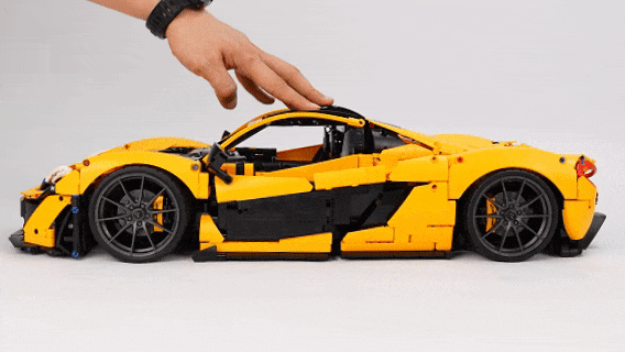正在完成了车辆内部的拼搭之后,整个车辆最复杂,也是最焦点的部门就完成。之后我们自始自终地来到了车辆外壳的搭建步调,这个部门正在这里我就不做过多引见了,让我们间接来当作品。迈凯伦P1套拆不愧是乐高集团两年时间打磨出的机械组旗舰套拆,成品模子的尺寸快要60公分长,火焰黄的配色,也完满还原了原车的外不雅。利用减震器做为支持的飞翼门联动布局,可以或许毫不吃力地支持起厚沉的车门,并且开门的过程非常丝滑,没有任何卡顿的感受呈现。由于联动布局将机械臂零件固定正在几个点上,虽然车门看上去摇摇欲坠,但丝毫不会零落。![]()
